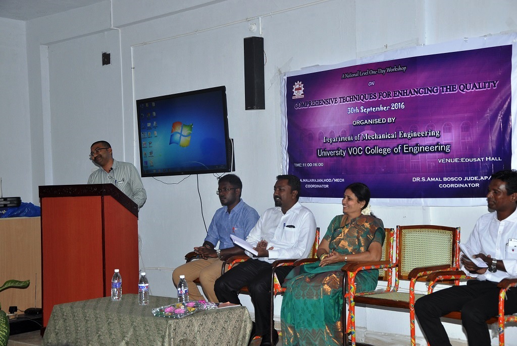 | 1 | National Workshop | Comprehensive Techniques for Enhancing the Quality | Dr.G.R.Jinu Assistant Professor Department of Mechanical Engineering Nagercoil | Dr. R. A. Malairajan & Dr.S.Amal Bosco Jude | 30.09.2016 |
